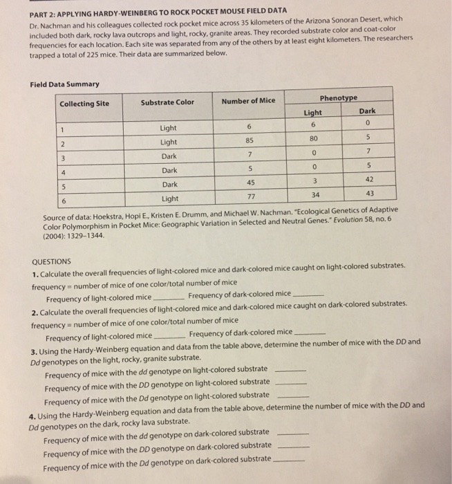 The student materials are also found in the . You can find populations of rock pocket mice all over the sonoran desert in the southwestern. This problem has been solved! At the beginning of the lesson, students place four illustrations showing different numbers of light and dark colored rock pocket mice at two locations . The teacher materials hold many teaching tips and the answer keys.