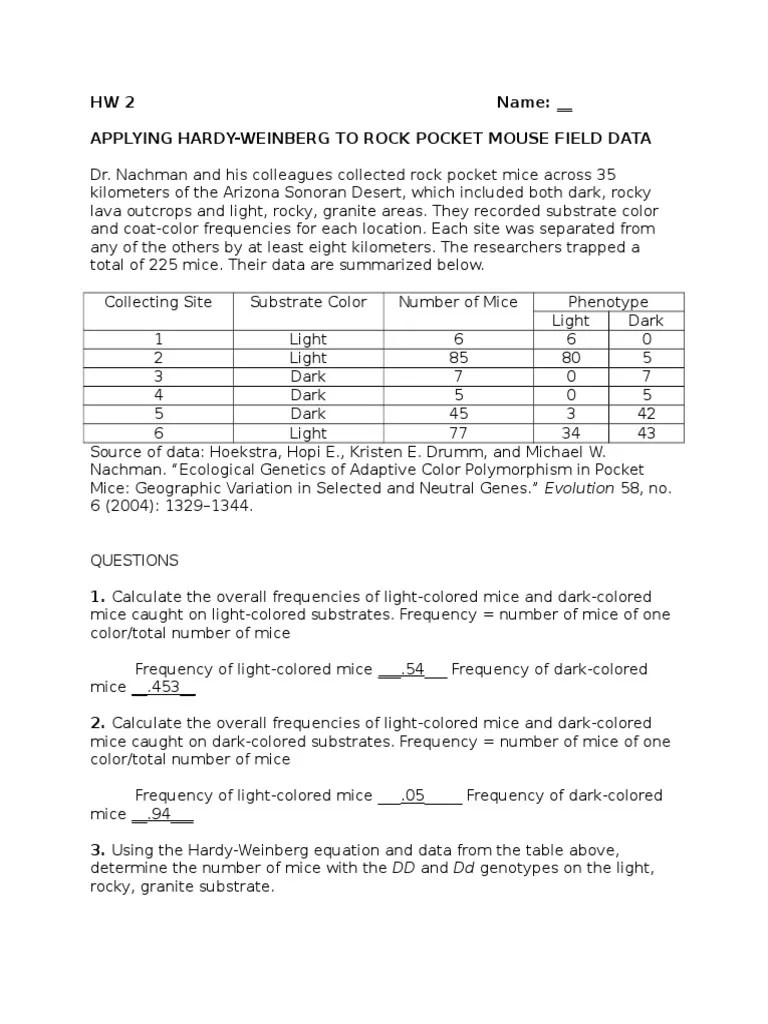 At the beginning of the lesson, students place four illustrations showing different numbers of light and dark colored rock pocket mice at two locations . Watch the video at biol.co/rockpock and answer the questions. The teacher materials hold many teaching tips and the answer keys. How caused the unusual landscape at the valley of fire? The rock pocket mouse lives in a desert ecosystem: This lesson is from hhmi biointeractive. • the environment contributes to determining whether a mutation is advantageous, deleterious, or neutral. Question 11 refer to the worksheet natural selection and evolution of rock pocket mouse populations to answer this question the . What is the genus and species of rock pocket mice? The tiny rock pocket mouse weighs . Return to lesson 2 video. Of mice and all other organisms. The student materials are also found in the .